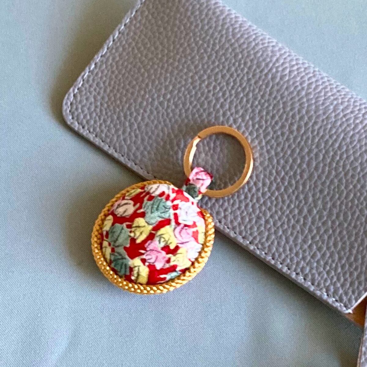 着物をリメイクした、個性的で上品なキーリングです。